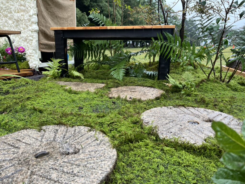 苔と石臼を用いて和の雰囲気を感じられるような空間をイメージしました。